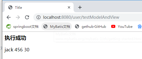 在控制器方法中,直接返回“success”字符串会自动定向到对应的页面。@RequestMapping("/testString")public String testString(Model model) { System.out.println("testString方法执行了..."); User user = new User(); user.setUsername("jack"); user.setPassword("123456"); user.setAge(30); model.addAttribute("user", user); return "success";}页面跳转(Forward)